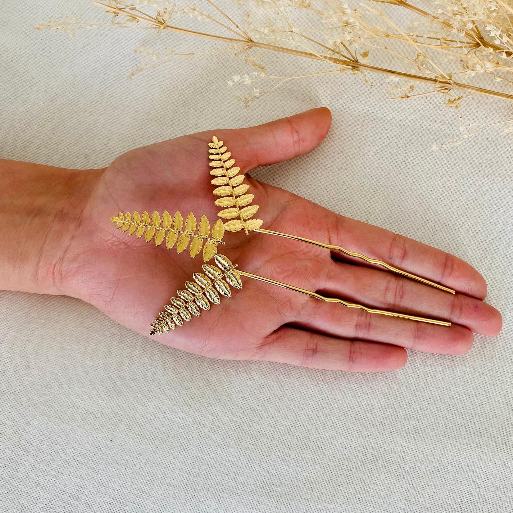 The Oréades hair stick adorned with its 3 leaves has been designed to enhance your wedding and ceremonial hairstyles. This jewel can be worn to decorate a bun or half-up hairstyle.