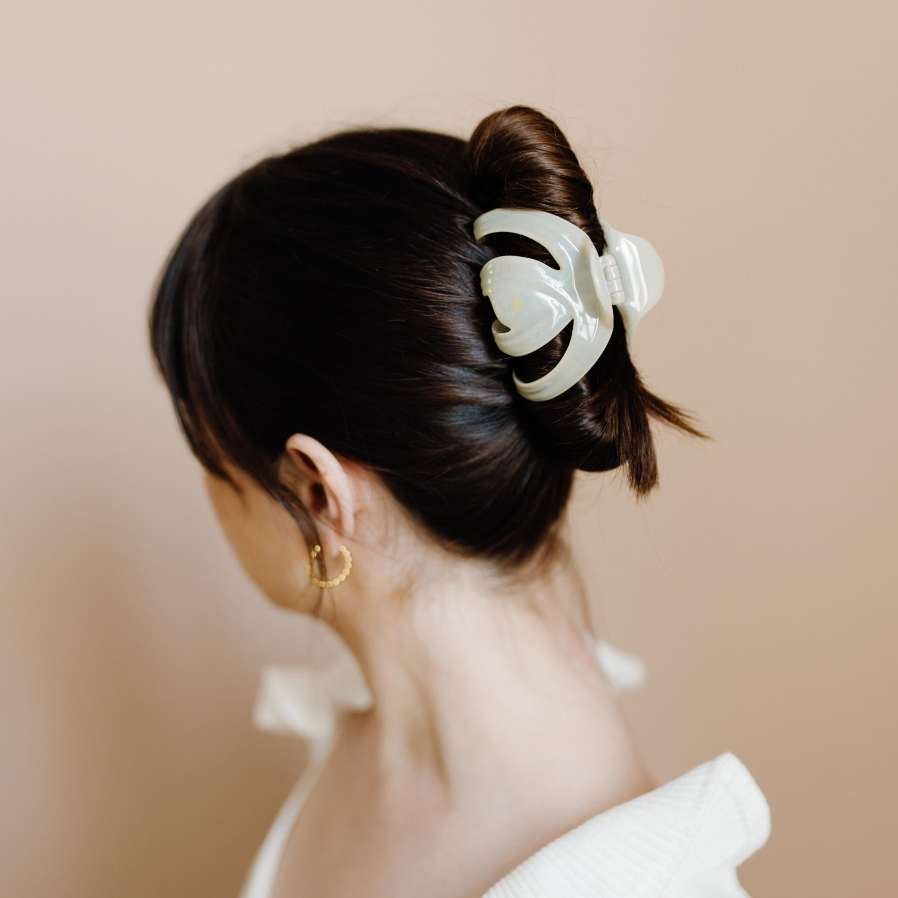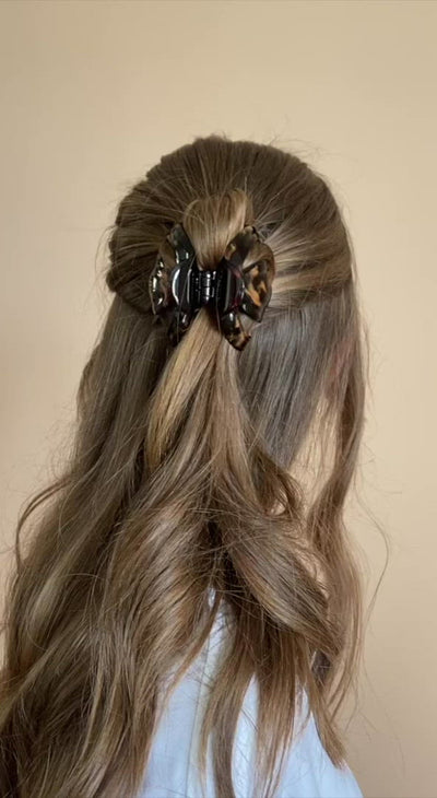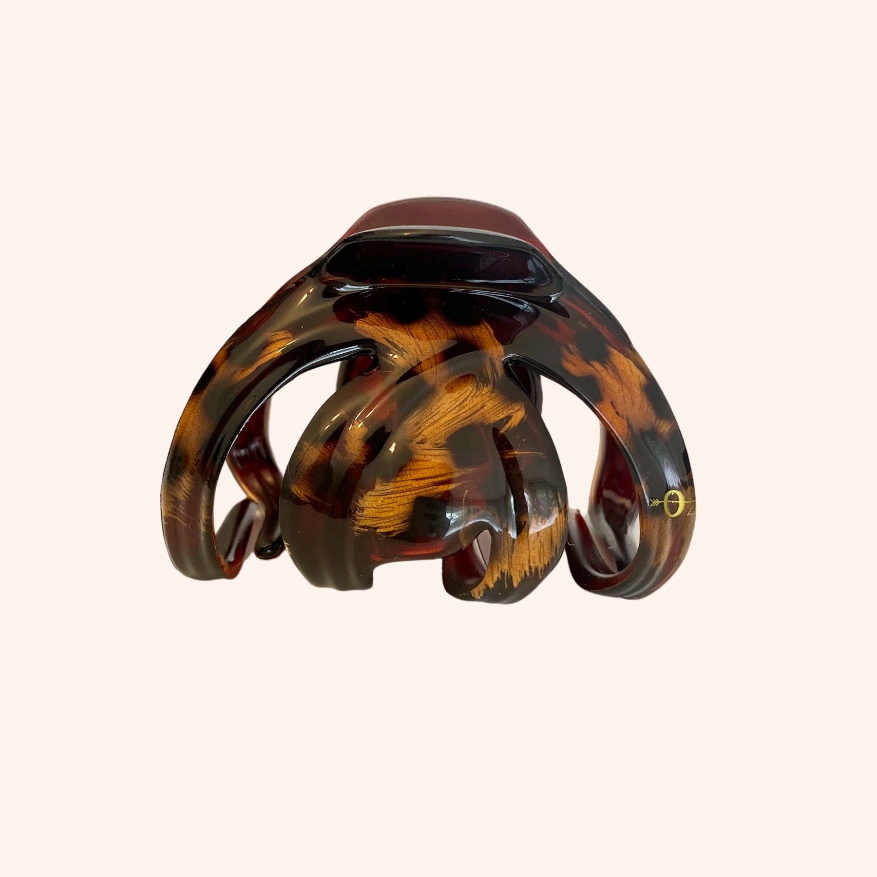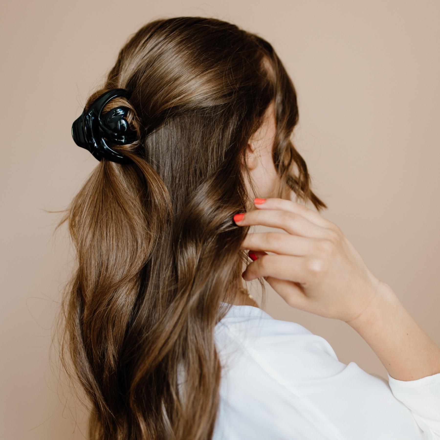 Arielle is a clip with a volume designed to optimally hold your hair in a bun while ensuring great comfort. Made in France in Oyonnax in Ain, it is made of cellulose acetate. This material made from cotton flower and wood pulp is gentle on the hair and does not damage the hair fiber. Its closing system is patented, the metal part has been replaced by a very resistant elastic which gives it both a lot of flexibility for easy opening and a lot of resistance for perfect hold of your hairstyle. Its large volume makes it particularly well-suited for thick hair.