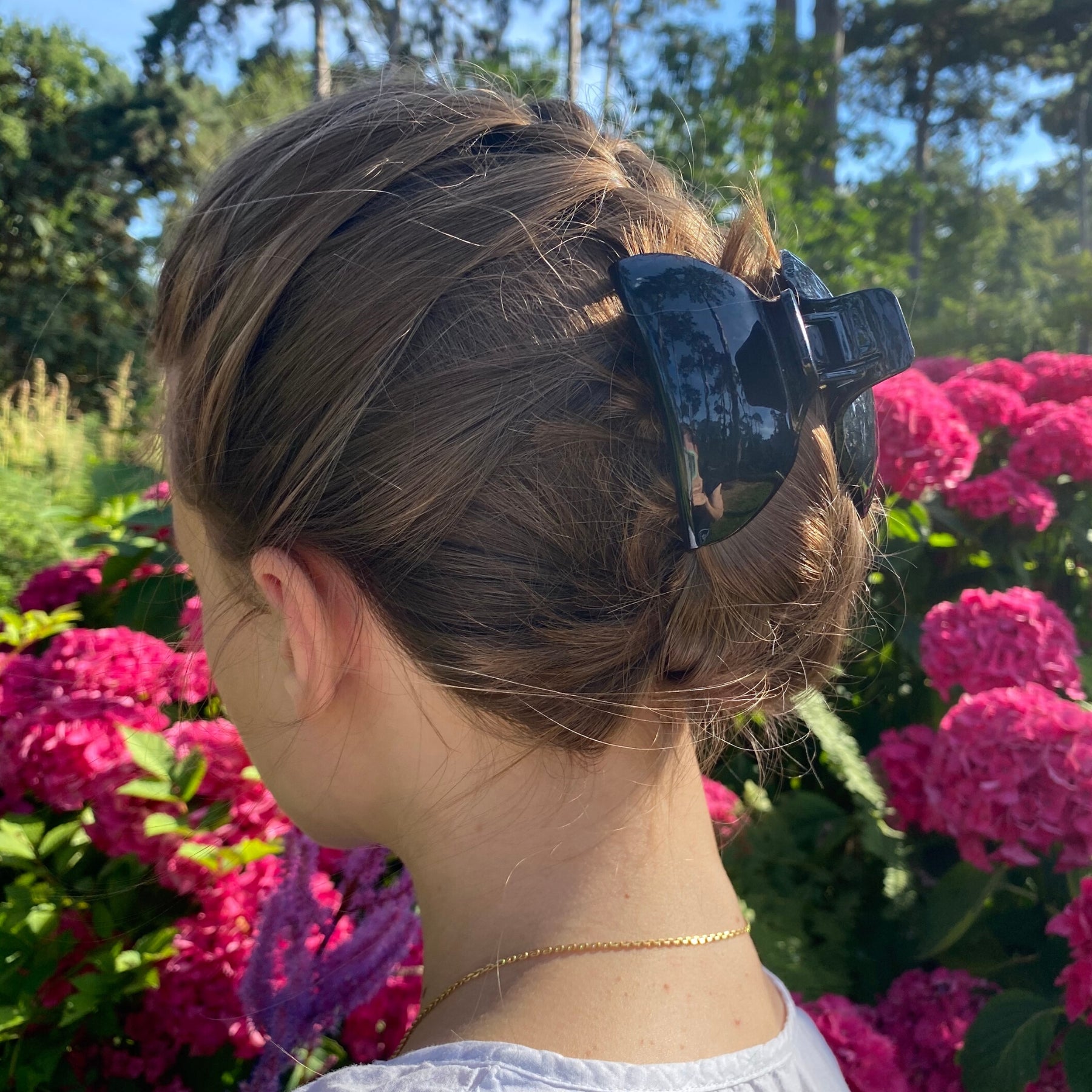 Emie est l'indispensable pince facile à mettre, à associer et tellement confortable. Fabriquée en France à Oyonnax dans l'Ain, Emie est en acétate de cellulose, matériau issu de la fleur de coton et de la pulpe de bois, tout doux avec les cheveux. Son ressort, masqué par un mécanisme cache-ressort, est à la fois souple pour une ouverture facile et résistant pour une tenue parfaite de votre coiffure. Cette pince est suffisamment large pour convenir aux cheveux épais. Grace à ses petits picots, elle pince ne glisse pas.